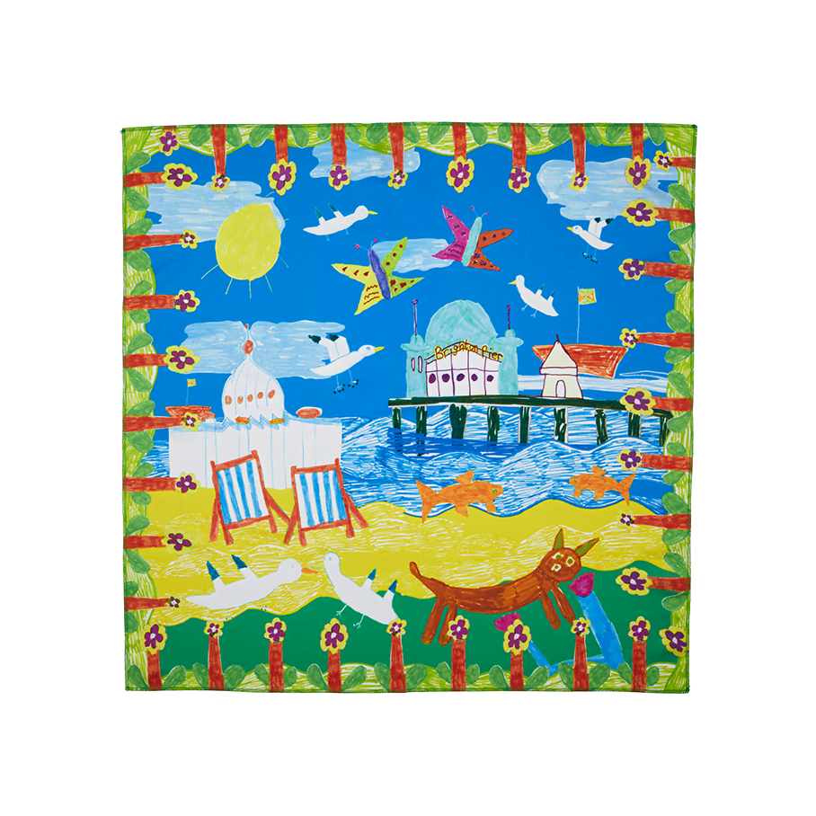 Looking for an eco-friendly alternative to traditional gift wrap? Tie up their treats in this reusable fabric made of recycled plastic bottles. The beautiful design is created by Lizzie Miller from Rocket Artists Studios, a not-for-profit based in Brighton, U.K that provides opportunities for learning-disabled people, those on the autism spectrum and people with complex support needs to make art, develop skills and contribute ideas to the arts and society. Lizzie says of the design, “It’s beautiful when the sun shines and the seaside is near my house—I go down there often when it’s nice out.”