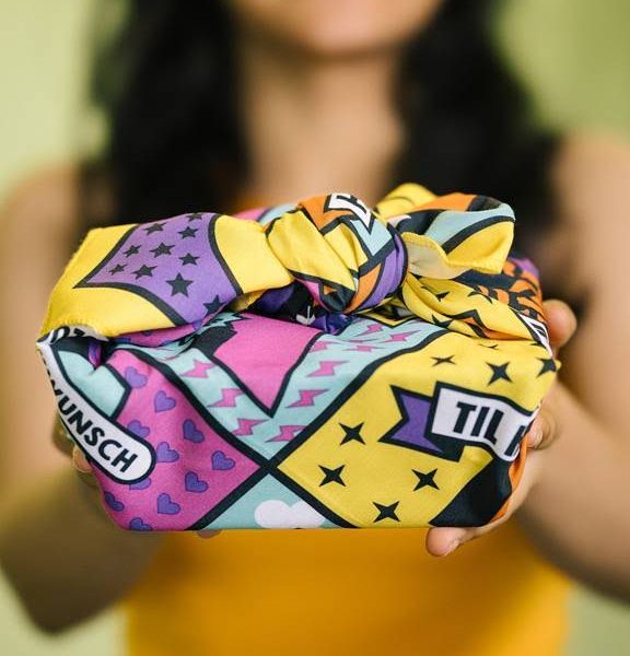 Use as gorgeous, paper-free gift wrapping, or wear as a scarf, headband or accessory.