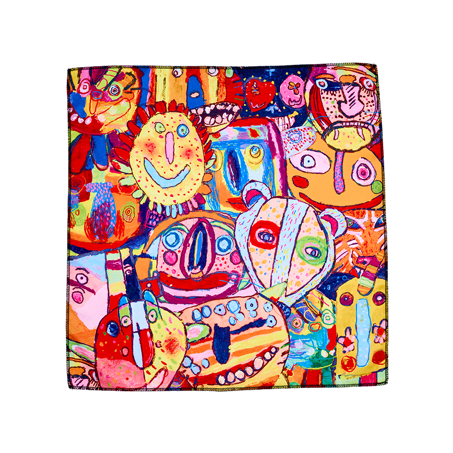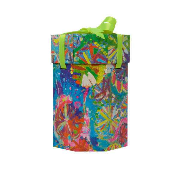 Designed by the talented artists at ARTHOUSE Unlimited — a charity presenting the artistic talents of adults with complex neurodiverse and physical support needs. Offering a sense of purpose lies at the heart of the charity. Their lively design was inspired by the vibrant colors of Mexico and the festive spirit of Día de Muertos (Day of the Dead). The artists began by crafting paper mâché masks, and then painting them in bold, eye-catching colors. These unique masks then became the foundation for the painted final artwork.